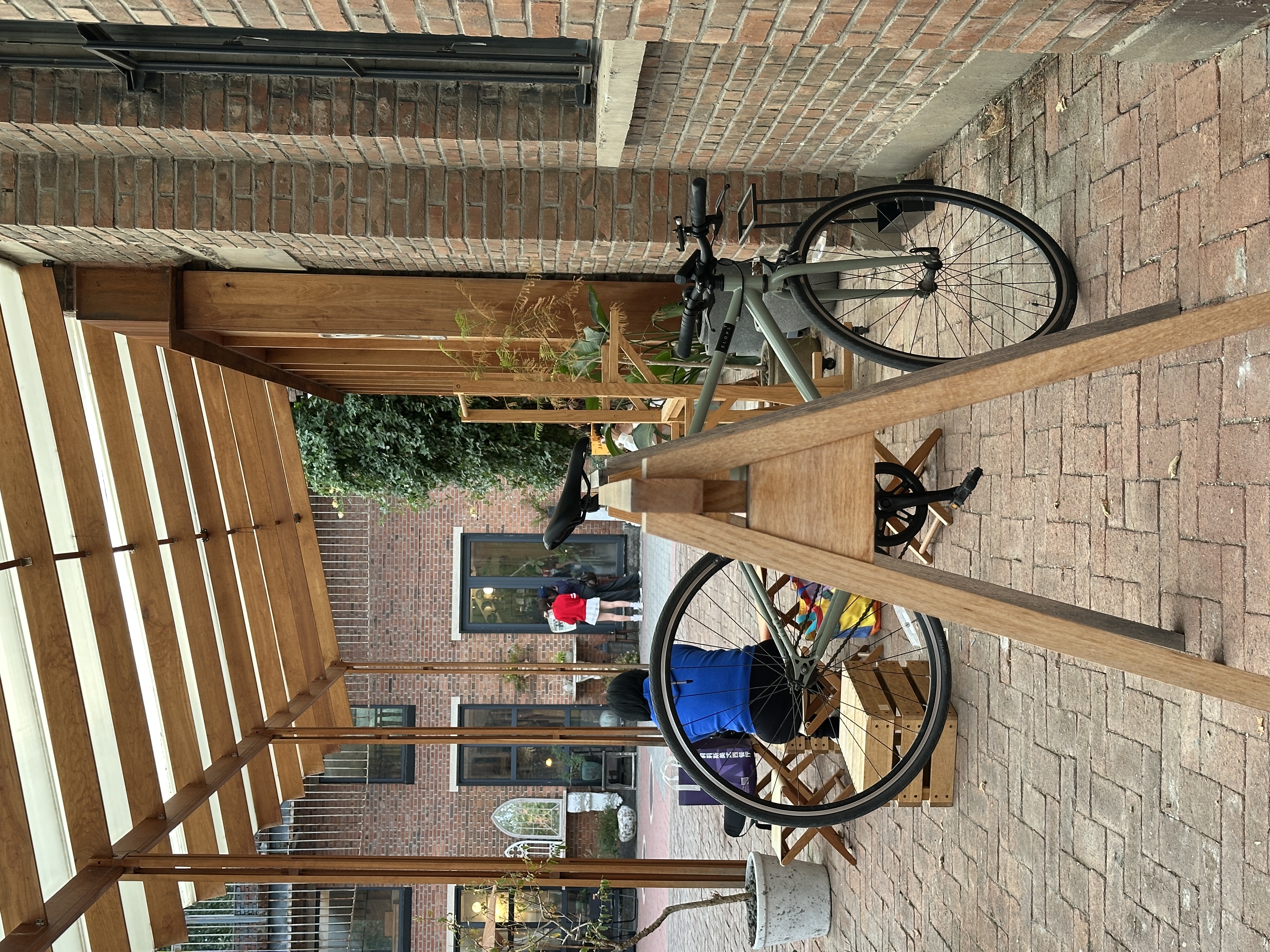 这里特色小店、美食餐厅、艺术展览一应俱全,是休闲娱乐的好去处。不少人骑行而来,将自行车随意搭在咖啡厅外面,趁着雨过天晴,天气爽朗,坐在户外喝一杯咖啡,相当惬意。