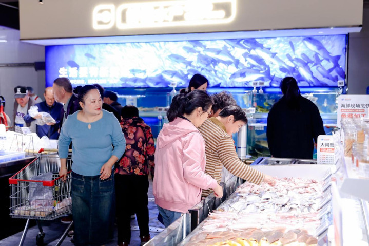 依托乍浦镇天然良港这一地理优势,门店的鲜活水产区全面升级供应链,每日直供梭子蟹、大闸蟹、罗氏虾等当季海鲜河鲜。正如物美集团在2025年度供应商大会上所披露的数据,“新物美”门店9月的鲜活水产销售增长超200%,源自江河湖海的新鲜滋味,正吸引着越来越多追求品质的消费者欣然前往。
