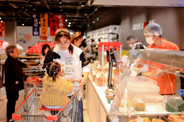 随着秋冬寒意的到来,乍浦店的现制熟食和烘焙区重点上架有“新鲜度”和“热度”的优质商品,推出多款江浙地区受欢迎的中式暖食与节令美食,如现制酱鸭、肉蛋堡、鲜肉小笼包、土家鲜肉饼等网红爆款,以及核桃满满面包、丹麦酥、牛角包等热烘糕点,满足居民日渐增长的“暖胃”需求。现场观察发现,店内设有多处免费试吃区,方便顾客现场品尝后选购,提升门店烟火气与购物体验。
